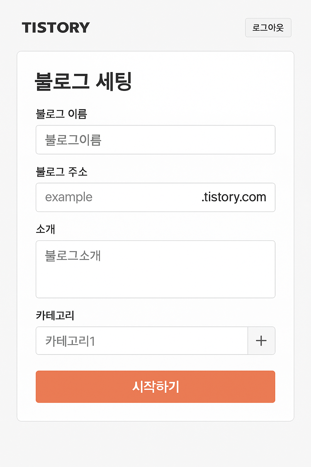 블로그 주소는 영문 기반으로 짧고 기억하기 쉬운 형태로 만드는 것이 좋습니다. 예: https://yourblog.tistory.com